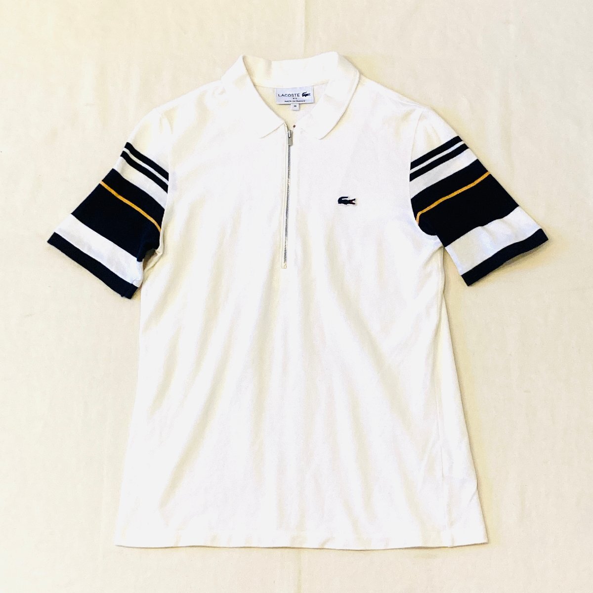 - LACOSTE ラコステ フランス製 ハーフジップ ポロシャツ ショートスリーブ 半袖 ホワイト/白 36 PF7234