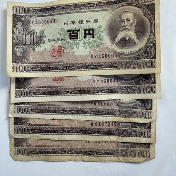 - 古銭 5枚セット 百円札 日本銀行券 板垣退助 100円札 古札 紙幣 古幣 古紙幣 貨幣 アンティーク コレクション整理 長期保管品 Y9u R7922