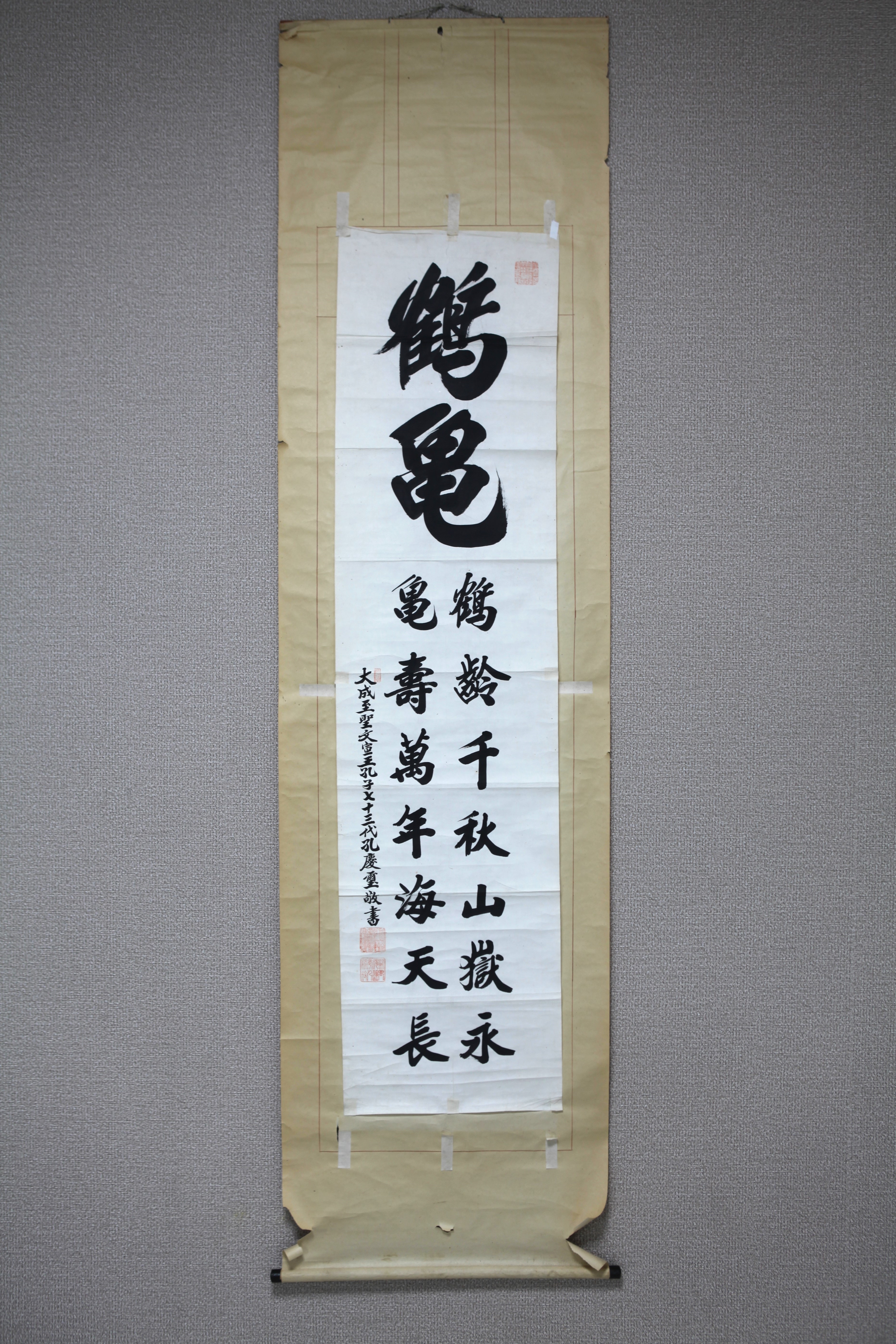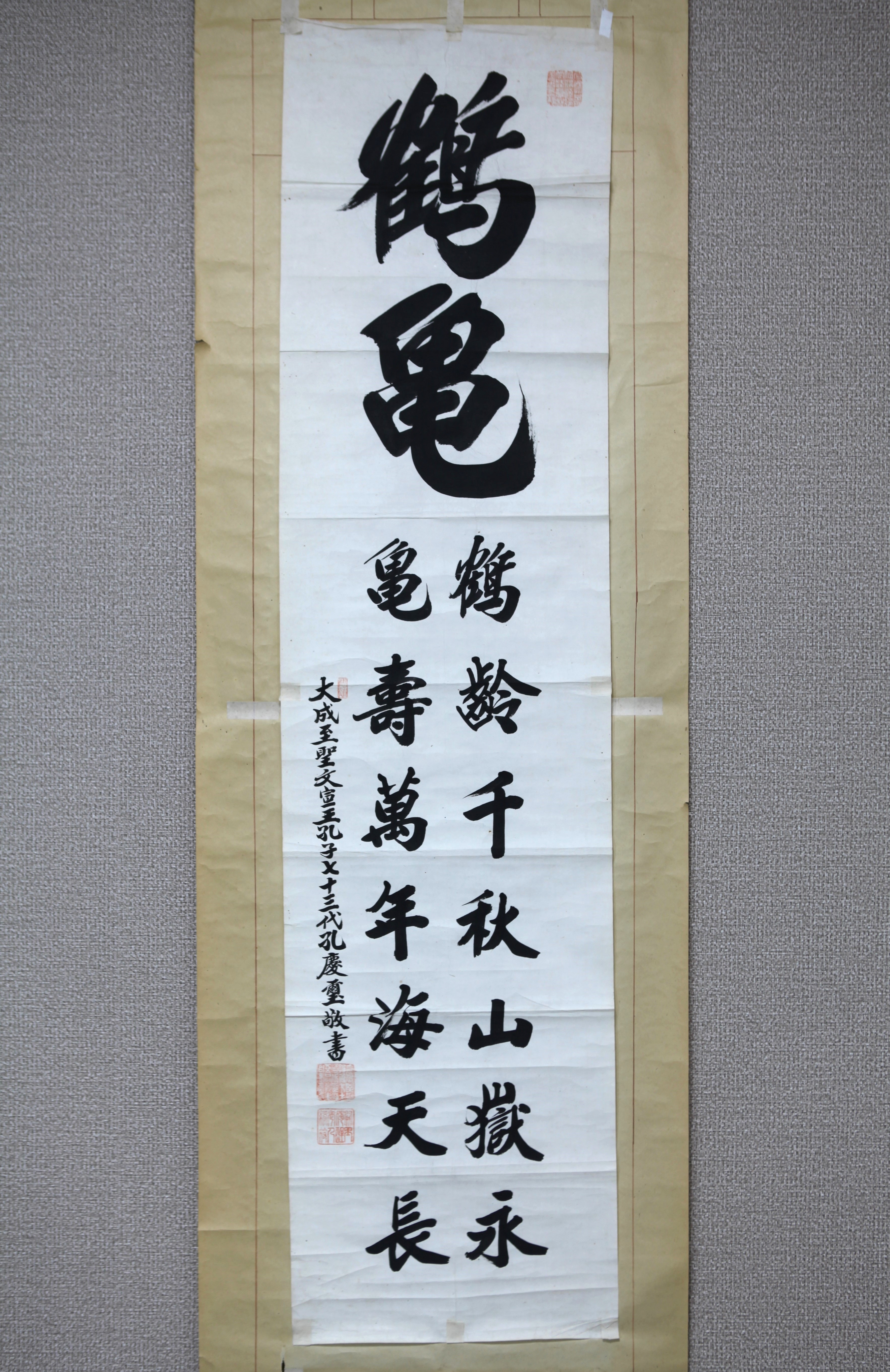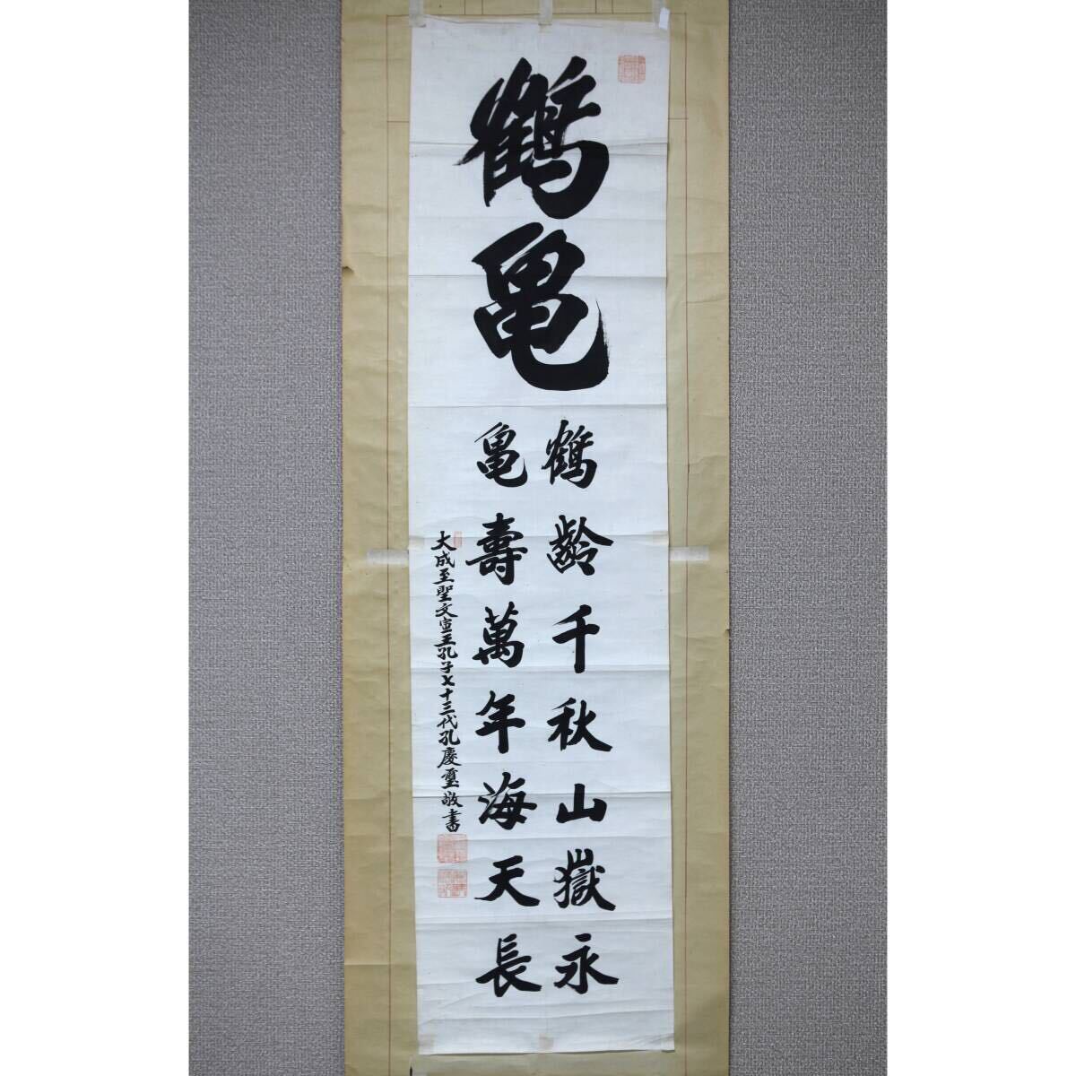 - 【真作】【風車】 孔子七十三代 孔令璽 「鶴亀長寿」◎肉筆紙本 未表装◎孔聖後裔 民国時代