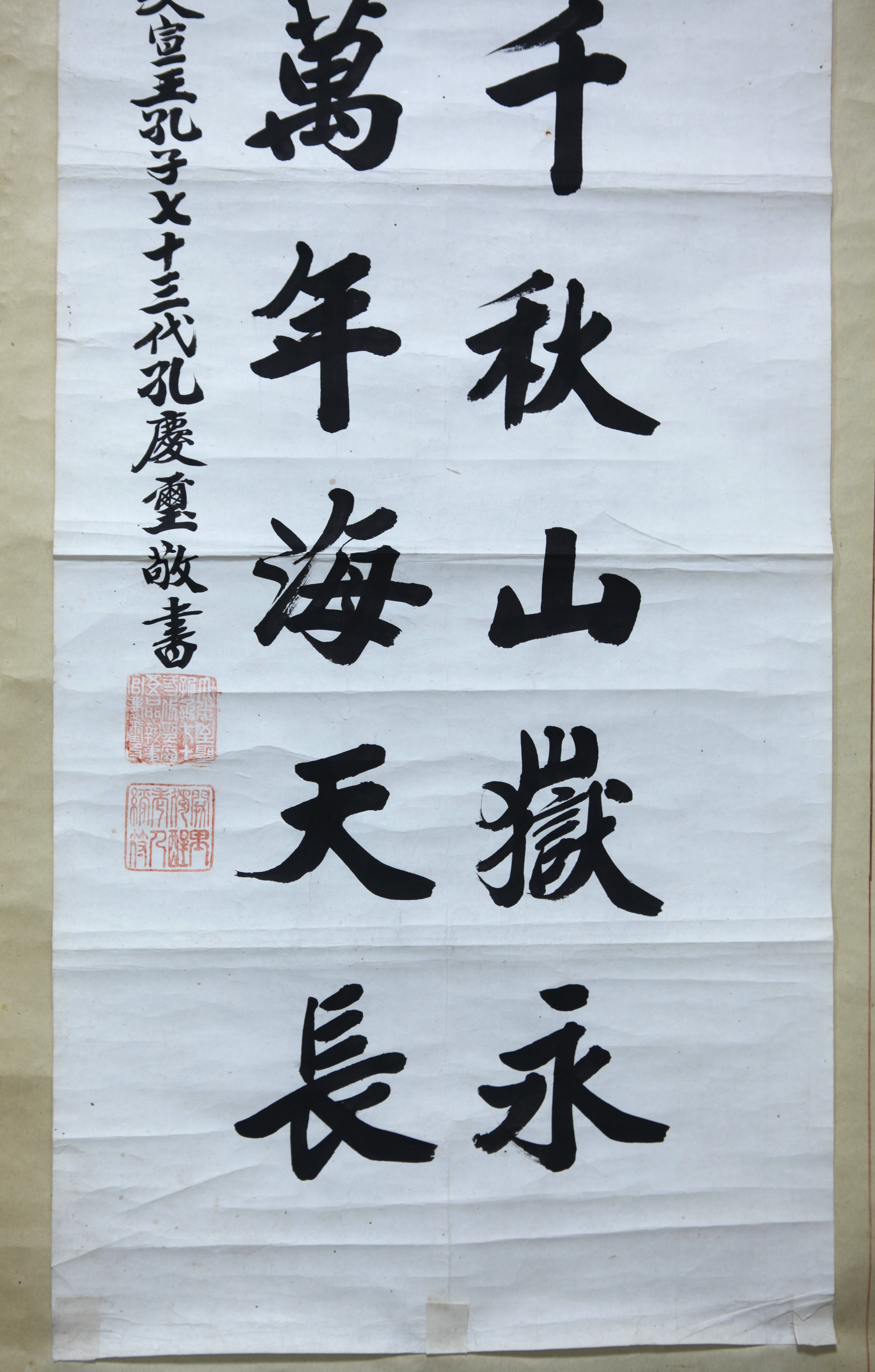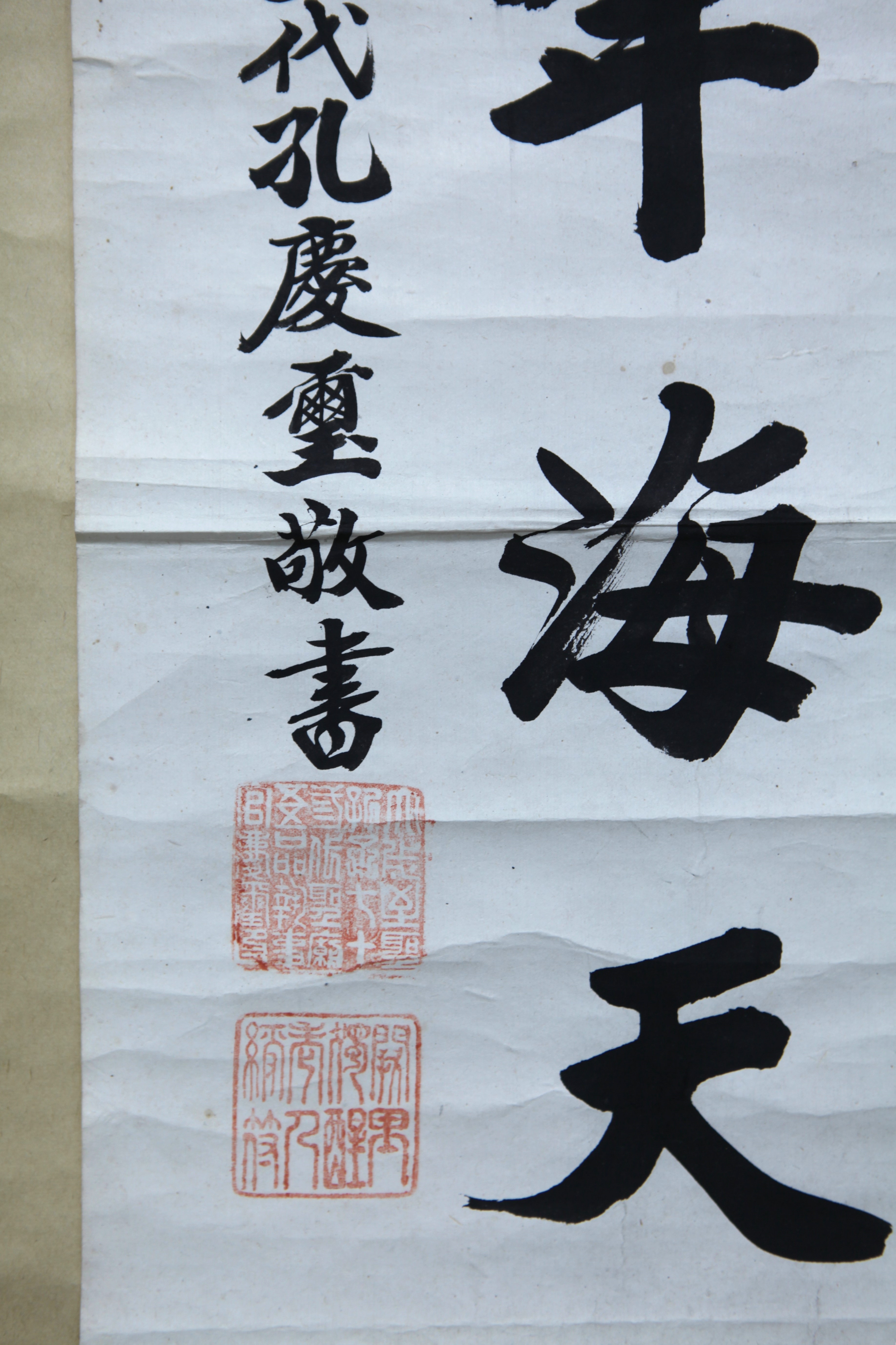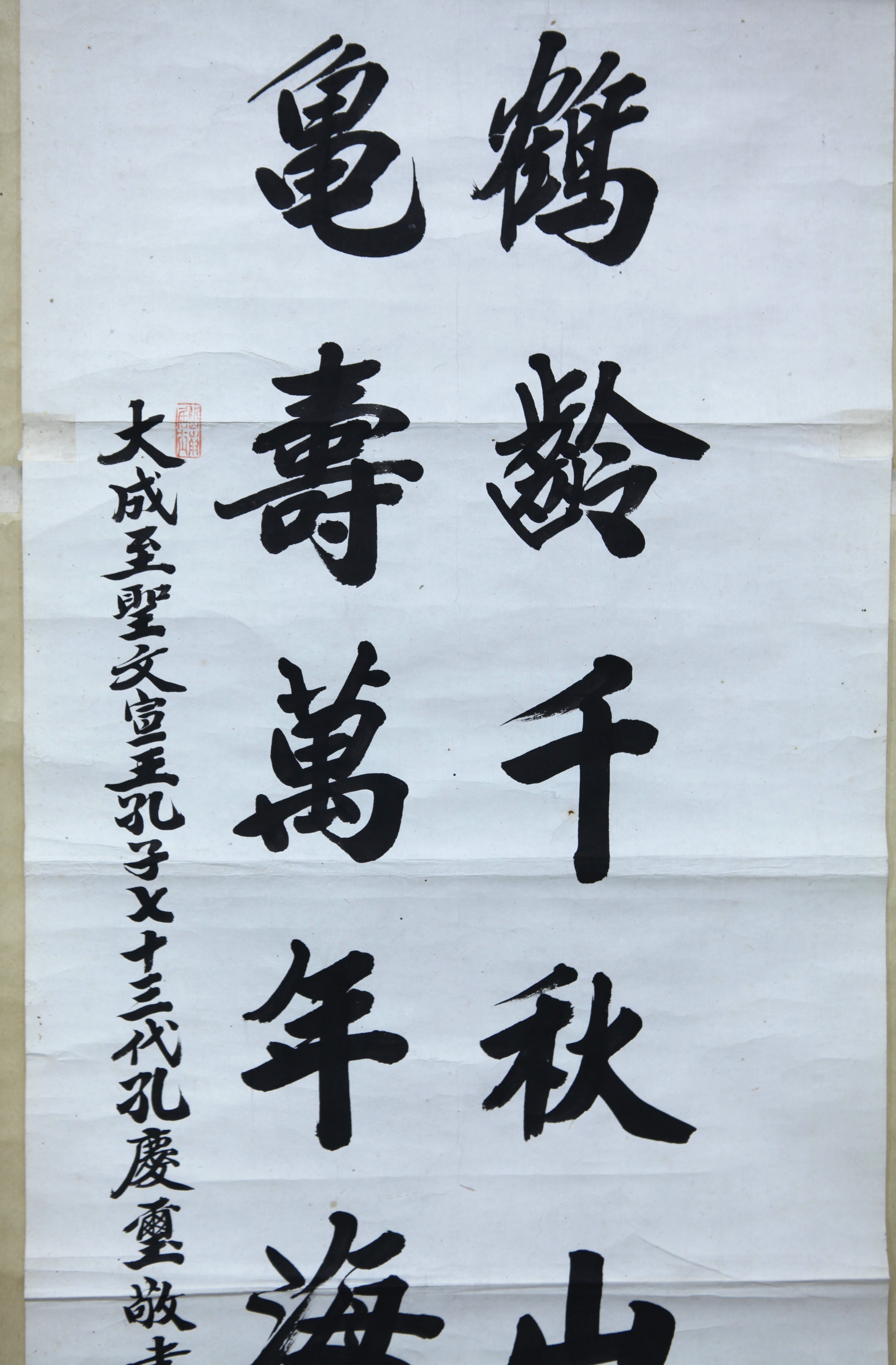 - 【真作】【風車】 孔子七十三代 孔令璽 「鶴亀長寿」◎肉筆紙本 未表装◎孔聖後裔 民国時代