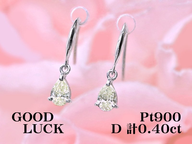 - 【新品・未使用】1円~最落無 天然ダイヤモンド 計0.40ct,プラチナ ペアシェープブリリアントカット ダイヤモンド フックピアス