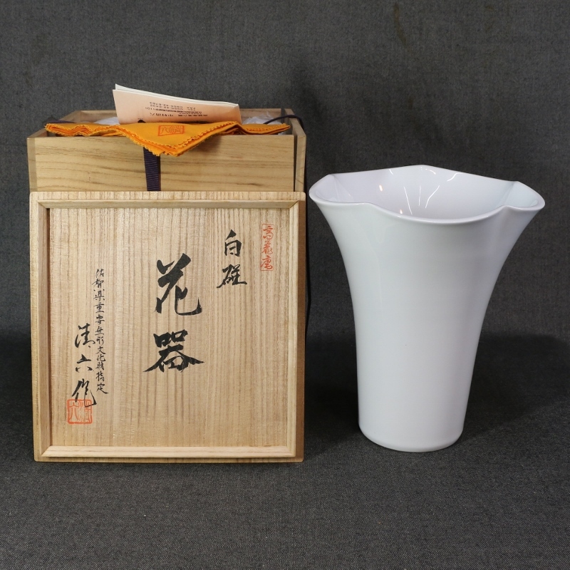 - ★佐賀県重要無形文化財 高麗庵 中村清六 白磁花器 共箱 大花瓶★