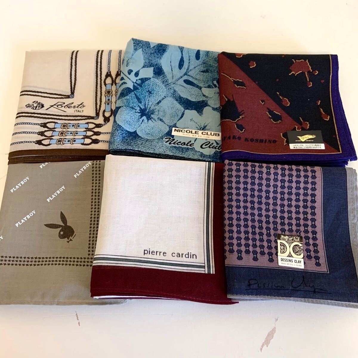 - 未使用 Roberto NICOLE CLUB PLAYBOY ピエールカルダン コシノアヤコ DESSINS CLAY 大判 ハンカチ 6枚セット メンズ 紳士 まとめ売り