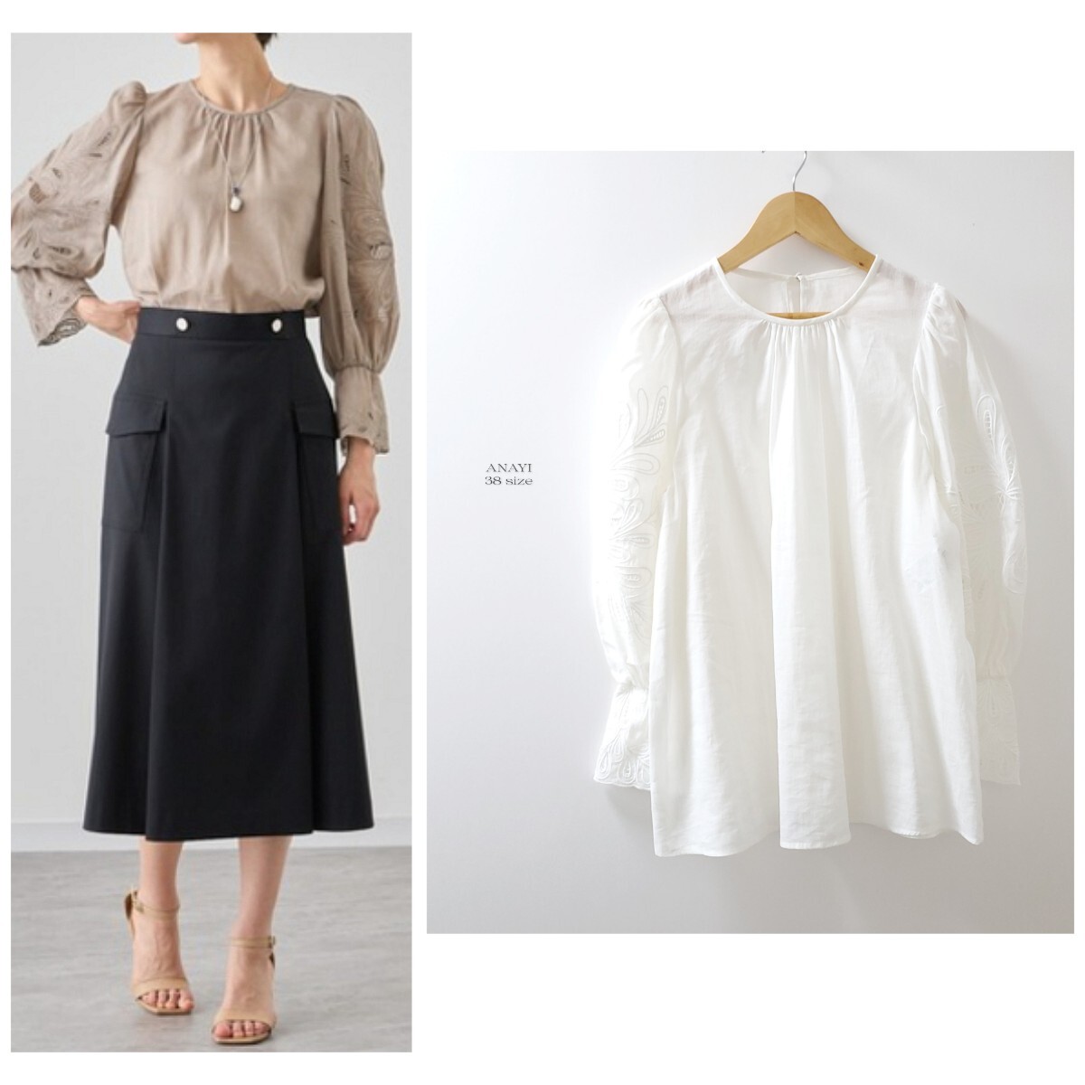 - 美品☆23SS☆ANAYI アナイ ラミーコットン リネン ローン袖 刺繍 ブラウス エンブロイダリー ホワイト