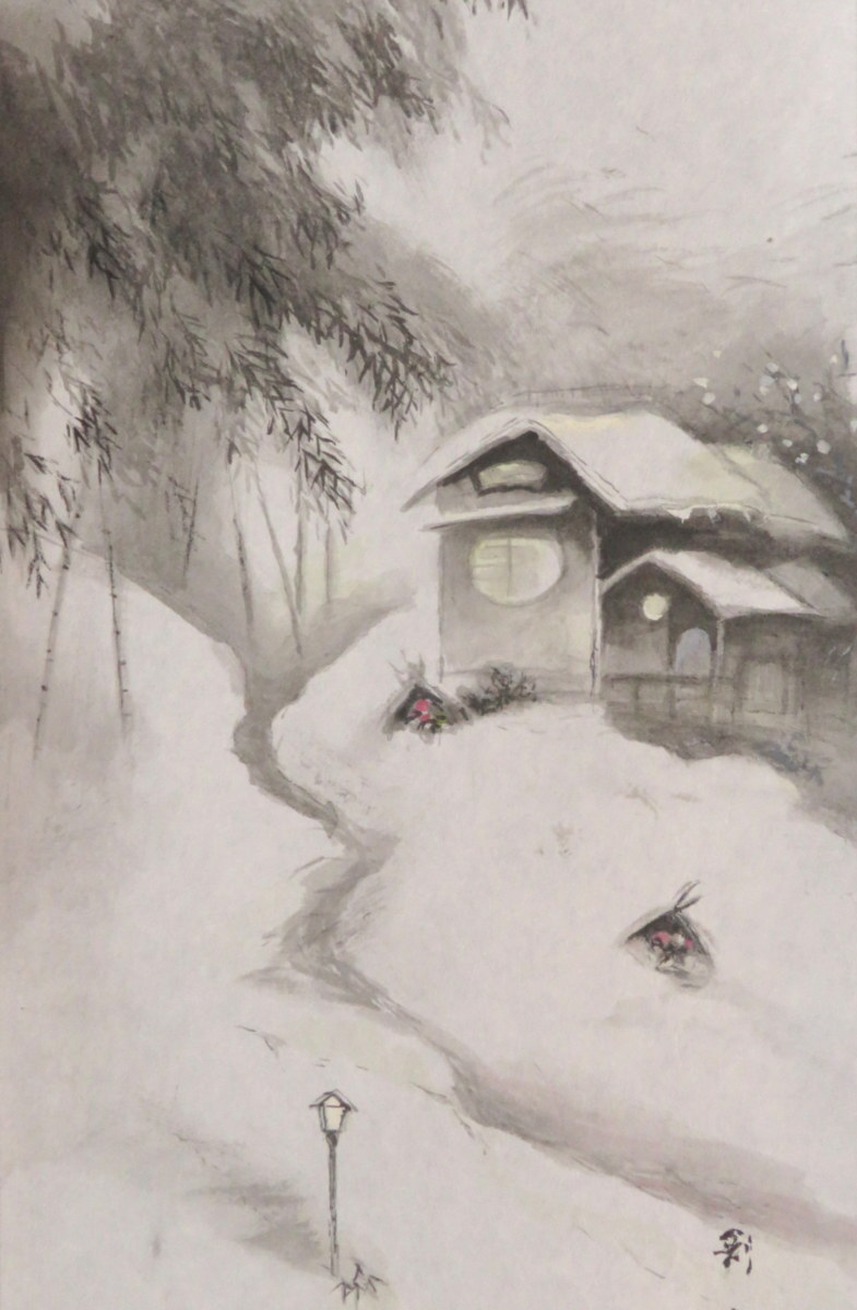 - ◆◇掛軸 飯尾剛史 初雪 尺巾 現代作家新作掛軸◇◆冬 日本画 JY1460