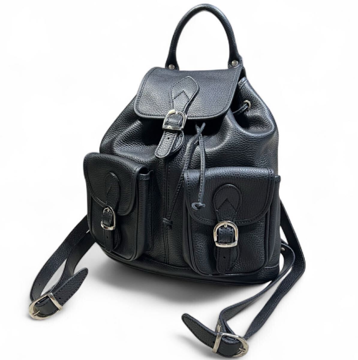 - 未使用級 イタリア製本革 イタリア製 シボレザー ユニセックスデザイン 2way リュック バックパック リュックサック ブラック