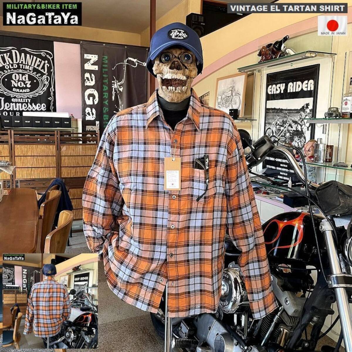 > VINTAGE EL ヴィンテージ イーエル メンズ 長袖 タータンチェック シャツ オレンジ Lサイズ 薄手 カジュアルシャツ アメカジ 日本製