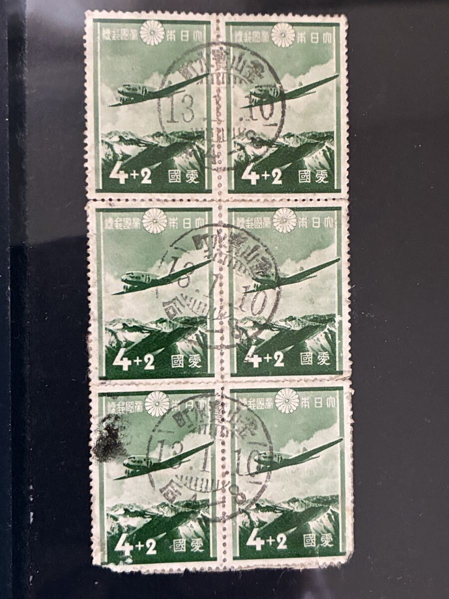 - 【送料込み】愛国切手 4+2 募金 s13年刻印 6枚剥がし綴り記念切手