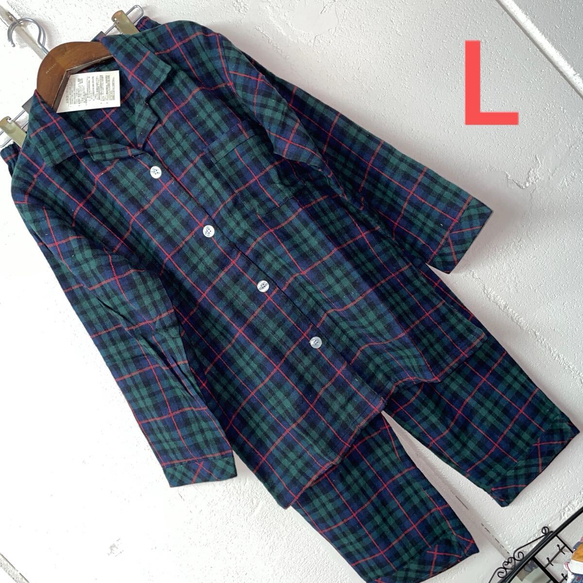 - Lサイズレディースビエラ起毛長袖長ズボンパジャマ上下セット グリーン