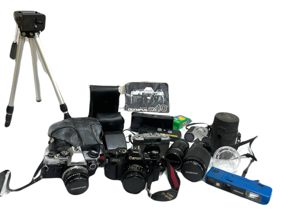 - (GA2065-2147)【1円スタート】カメラ等 おまとめ 13点 フィルムカメラ レンズ フィルム Canon キャノン OLYMPUS オリンパス ジャンク品