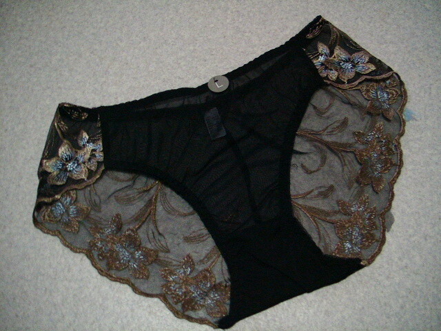 - 【豪華花柄刺繍 シースルーショーツ】◆ブラック×ゴールド◆b24-2◆L◆