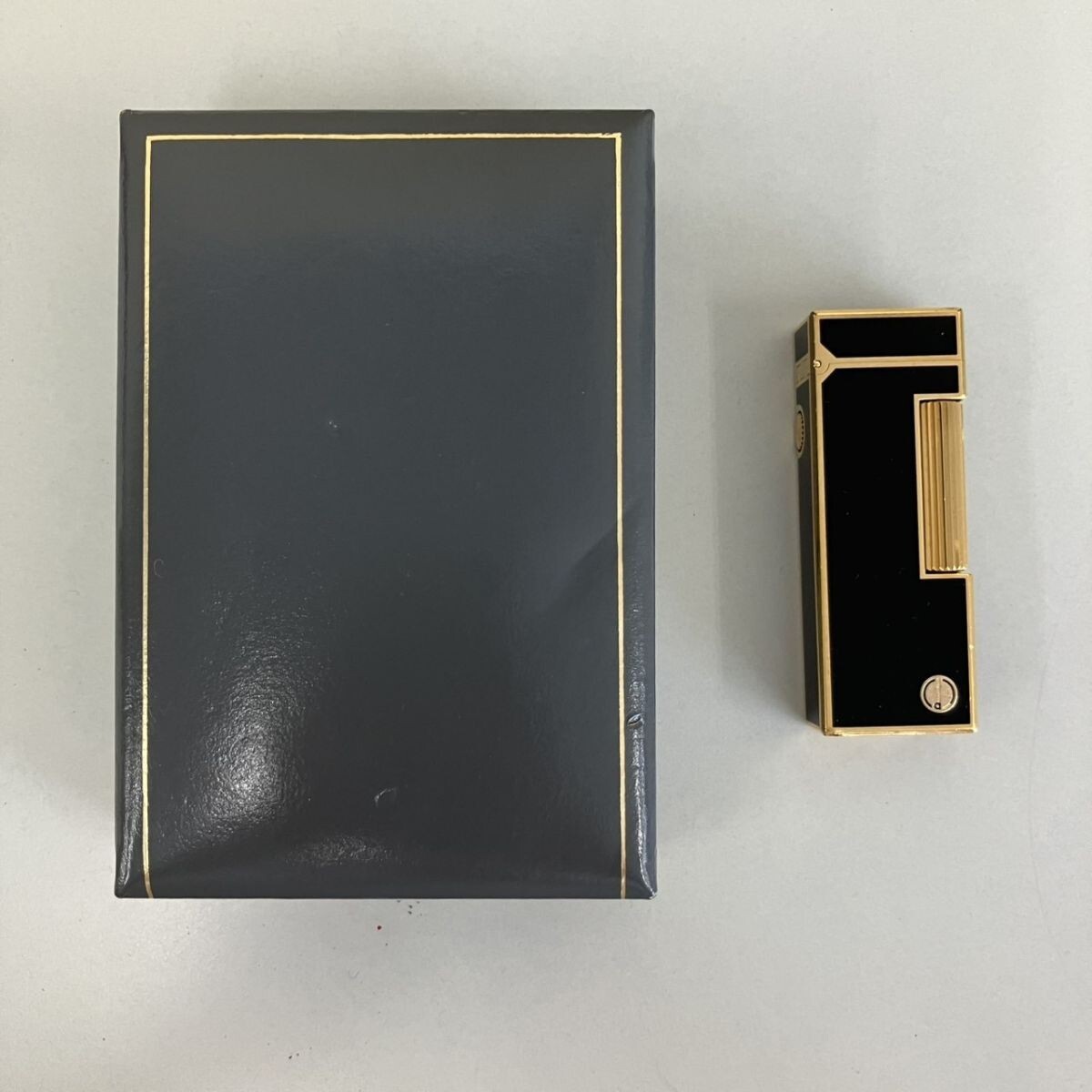 > D171-I65-935 dunhill ダンヒル ローラー式 ガスライター メンズ ライター 喫煙具 喫煙グッズ 煙草 黒×ゴールド ケース付き TC