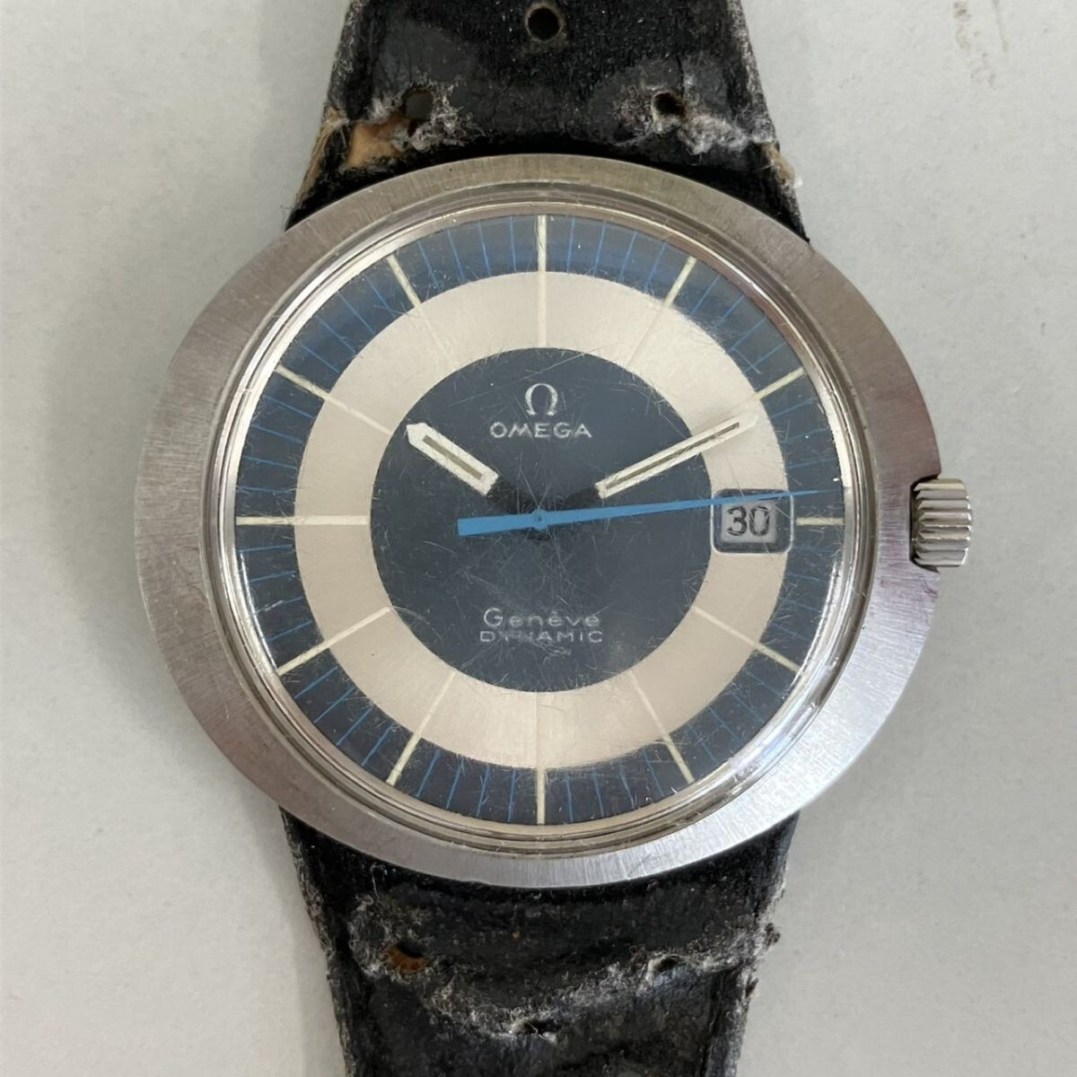 - E118-H41-152 ◎ OMEGA オメガ Geneve DYNAMIC ネイビー×シルバー文字盤 TOOL107 自動巻き デイト メンズ腕時計 稼働品 TC