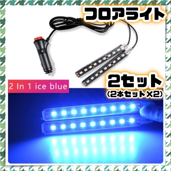 - 2本×2 4本 LED フロアライト シガーソケット スイッチ付き アイスブルー フットランプ 車内 内装 足元 間接照明 電装 光 自動車 12V 汎用
