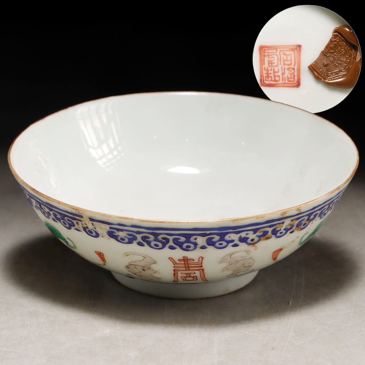 中国古玩 【同治年制】 色絵寿文碗 蝋印有の出品です。