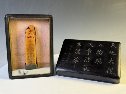 > 『三希堂』 清代 乾隆御題 老寿山石 田黄石彫 瑞獣鈕印章 細工 手彫り 中国古賞物 古美術 重量:203.8g 高さ12cm 底径2.7cm C28