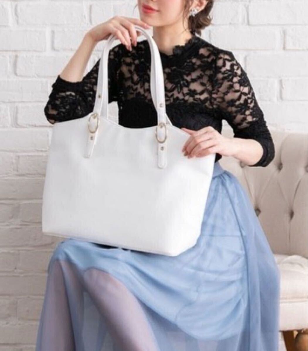 - レア 完売 即決 新品 夢展望 Newlyme カーヴィーライントートバッグ ホワイト トートバッグ A4 トート 通勤 通学 大容量 お洒落 白