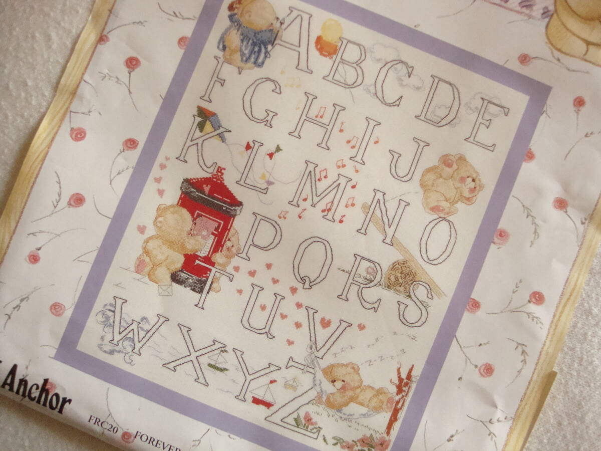 - 未開封 Anchor 英国製 クロスステッチ 刺繍 作成キット FRC20 くま アルファベット 39cm×32cm 刺しゅう テディベア Forever Friends