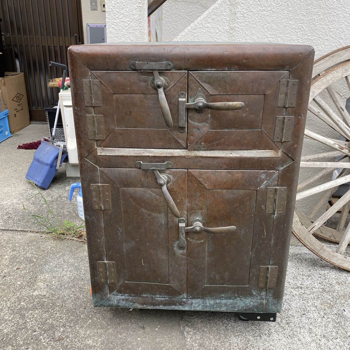 > ヤマトらくらくC ★ 前面 銅板 冷蔵庫 アンティーク 古道具 レトロ 昭和レトロ 古民具 氷冷蔵庫 ビンテージインテリア 氷冷式 当時物