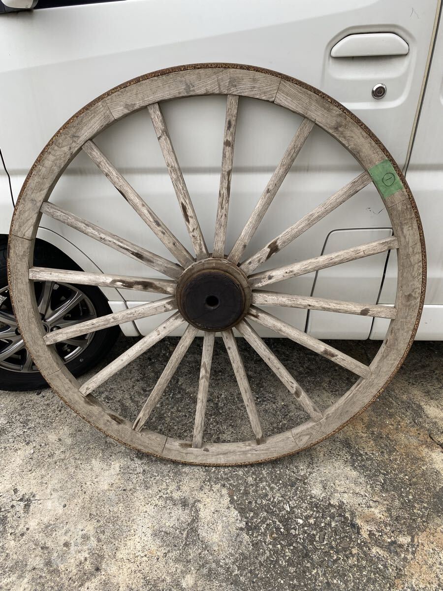 - 手渡し又は西濃法人か営業所止め ★ レトロ 大八車 ① 車輪 荷車 木製 鉄輪 直径103cm アンティーク オブジェガーデニング