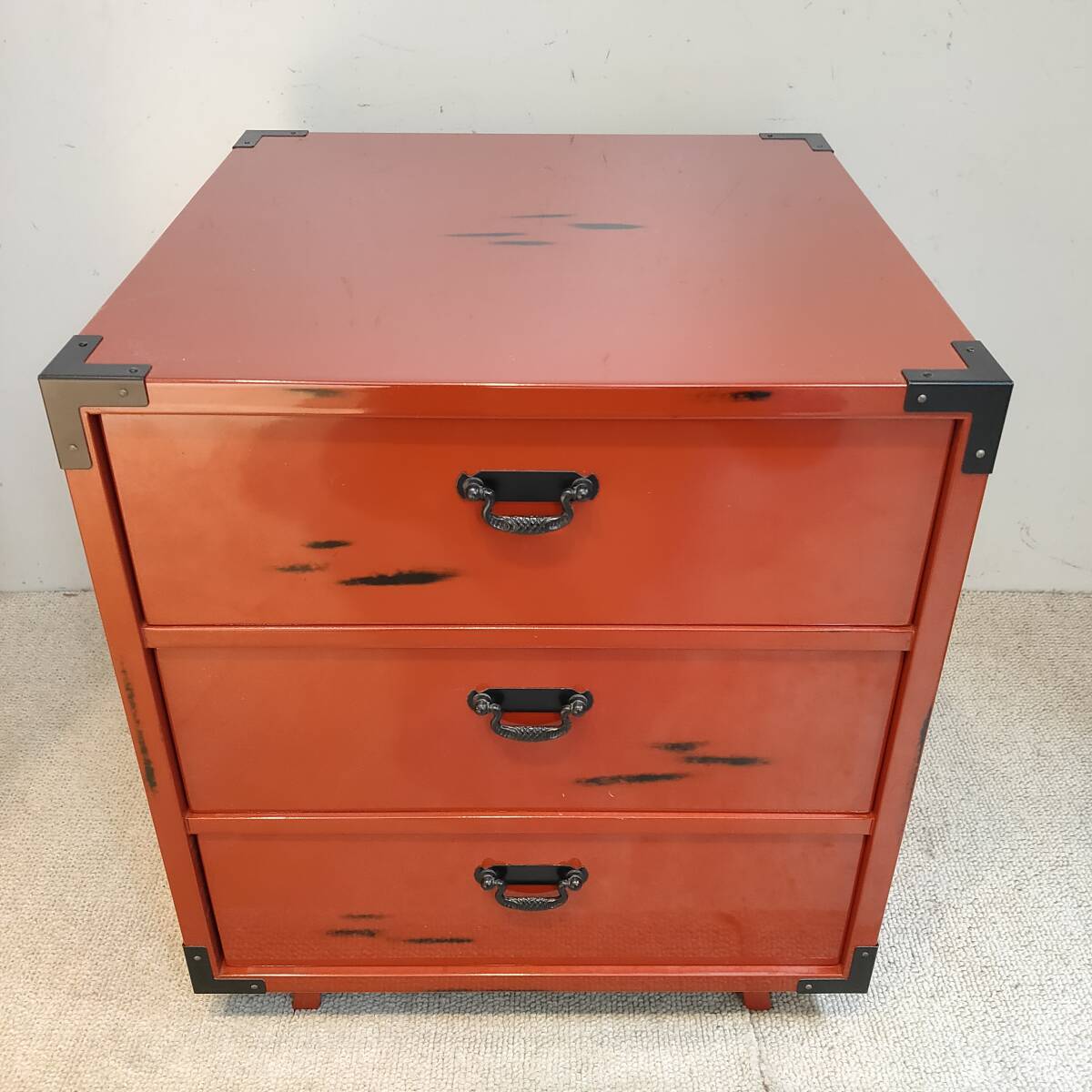 - 092304●伝統工芸 根来塗 三つ引出し 高さ33cm 漆器 漆塗 三段 小物入れ●