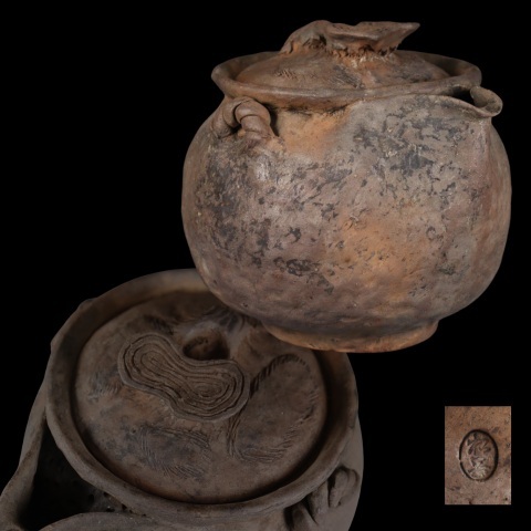 - 蔵出し品 南蛮焼 松〇 手造宝瓶 霊芝摘 煎茶道具