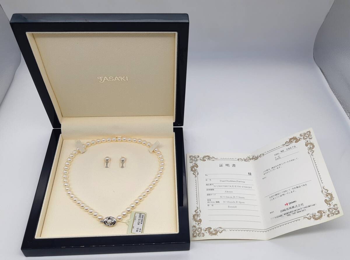 - 田崎真珠 TASAKI タサキ パールネックレス イヤリング あこや真珠 直径約7.5mm 全長約42cm K14WG ■1975