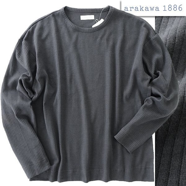 > 新品 arakawa1886 日本製 コットン リブ クルーネック カットソー L 濃灰 【I40118】 荒川 メンズ 丸首 ナイトウェア パジャマ Tシャツ