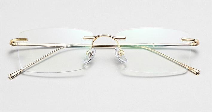 - 【新品】超軽量メガネ! 金属 チタン 眼鏡フレーム ふち無し レンズ交換可能 ファッション小物 男女兼用 ゴールドydyj111