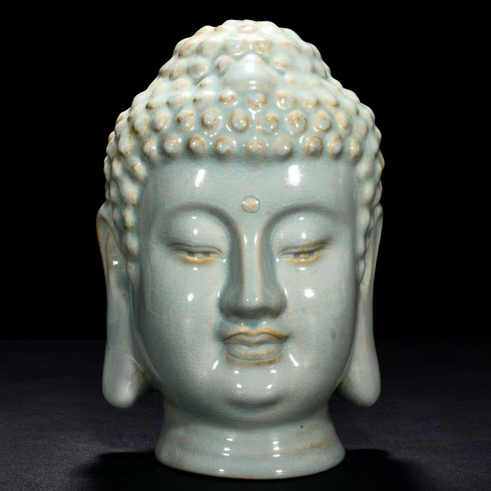 - 宋時代 汝窯天青釉仏頭(大宋汝窯青龍寺御製)金 磁器 秘蔵 古陶磁器 陶芸 唐物 古賞物 時代物 骨董品 古置物 中国磁器 古美味 中国古玩923