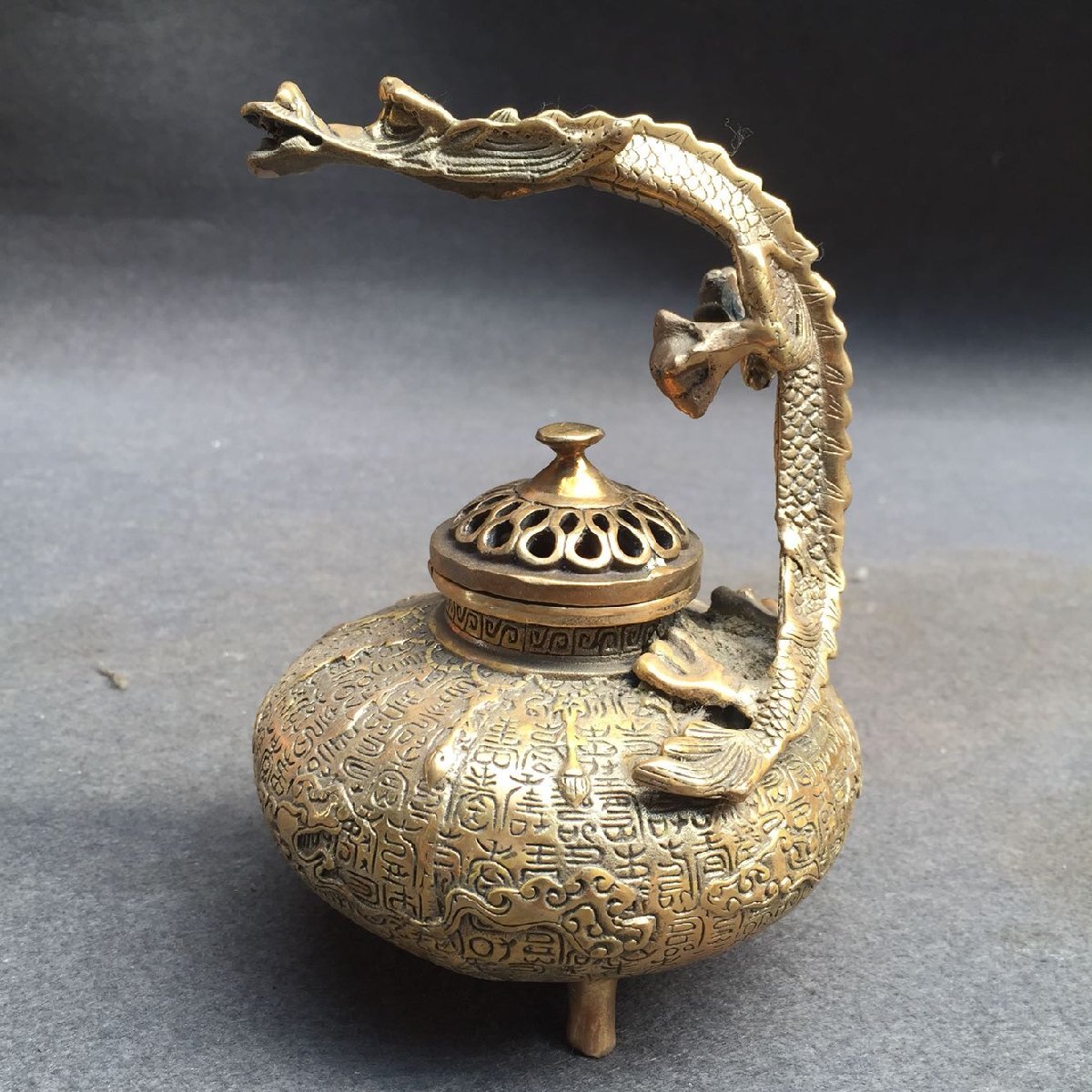 - 純銅 百寿 龍香炉 銅器 茶道 香薫炉 香炉 茶道 仏堂 銅香炉 燻香炉 線香炉 香道 香具用品 置物 装飾