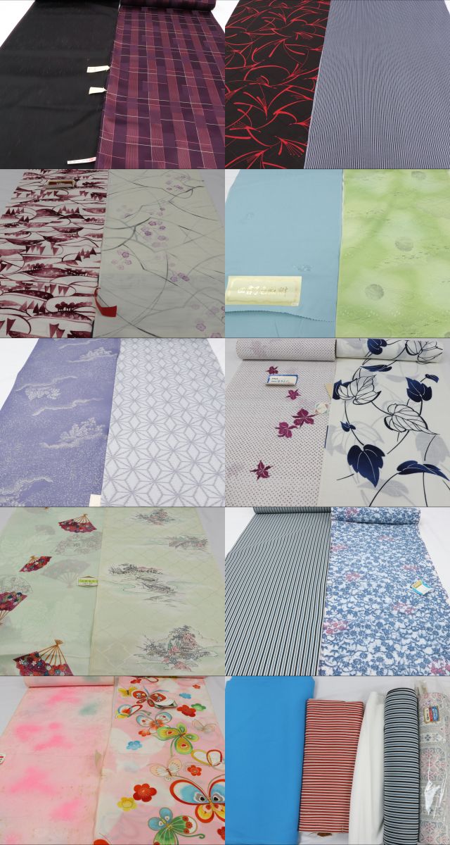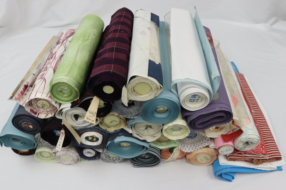 > 化繊 着物 長襦袢地 等 反物 端切れ まとめて 大量 35点以上 小紋 紬 色無地 裏地 コート 浴衣 絽 未使用 リメイク素材 着物【彩irodori】