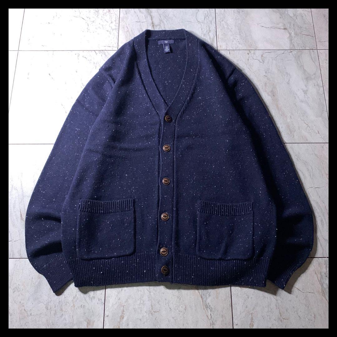 - 00s〜 OLD GAP コットンニット カーディガン ネイビー ネップ XL