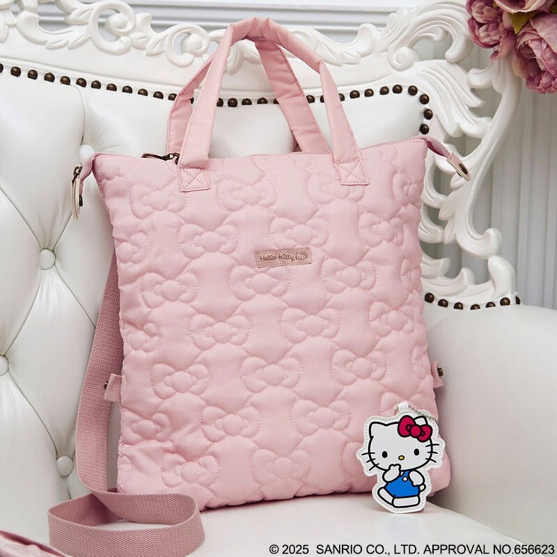 - + 205 ハローキティ PINK チャーム付き3wayキルティングBAG 送料450円