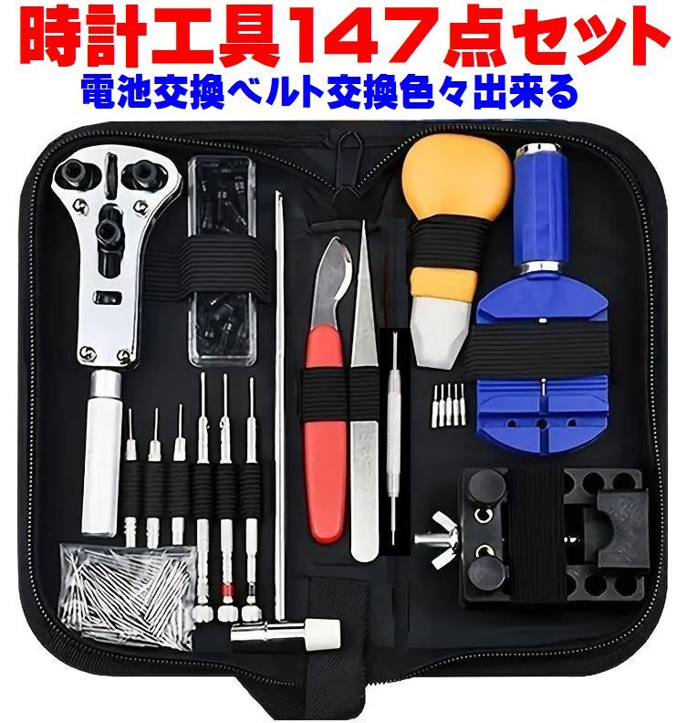 - 送料無料 時計工具147点セット 電池交換・ベルトメンテ ハンマー付き 匿名配送 自分でできる 自分でメンテ