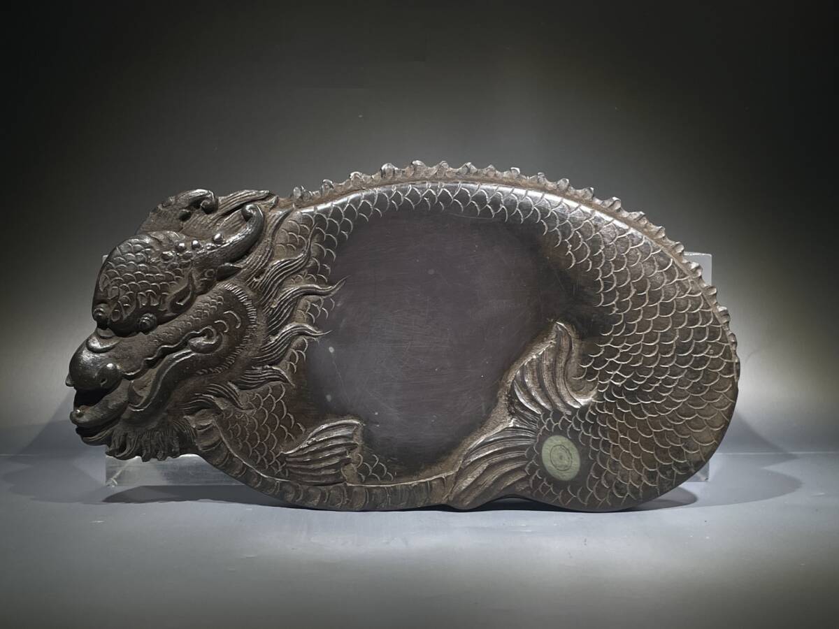 - 珍藏品 古硯台 魚紋 魚化成龍 端硯 硯台 宝硯 文房具 文房用品 文房四宝 書道具 時代物 古董品 骨董 旧家蔵出 唐物 中国古玩 古美術品