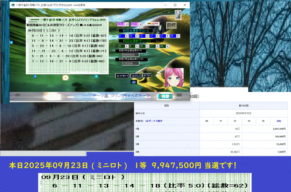 新作☆ロト予想ソフト『一攫千金ロト攻略ソフト_比率くんEXマリン子ちゃん2025』をご案内いたします このロトソフトは、新機能のキャラクターコラボシリーズになります。 またまた 本日2025年09月23日 ( ミニロト ) 1等 9,947,500円 当選です! 2025年09月22日 ( ロト6 ) 3等 303,500円 当選です! 新機能の特徴 【比率】数字の大小の分布が出ます。 【総数】出目の足した数が出ます。 これは、予想の当選に大きくかかわる大事なデータです。2025年09月23日 ( ミニロト ) 1等 9,947,500円 当選です!2025年09月22日 ( ロト6 ) 3等 303,500円 当選です!2025年09月22日 ( ロト6 ) 5等 1,000円x3 当選です! 只今 ロト6で、当たれば100% 2等以上 高額当選です! 買い目も少なく、気合の6点と、わかりやい予想です♪ 画面の選択項目も、いたってシンプル(6点買い目が出現)です。 必殺GOGOランプ★が光れば高額当選の期待度UP! ◆LV:6★GOGO!! が出れば、只今鉄板ですね!2025年09月23日 ( ミニロト ) 1等 9,947,500円 当選です!****** 一攫千金ロト攻略ソフト_比率くんEXマリン子ちゃん2025 ****** 製図用紙001[ビルの夜景クローズアップ] ◆LV:6★GOGO!! 6 - 11 - 13 - 14 - 18 (比率 5:0) (総数=62) 11 - 9 - 14 - 21 - 23 (比率 4:1) (総数=78) 5 - 23 - 14 - 9 - 18 (比率 4:1) (総数=69) 11 - 21 - 23 - 4 - 12 (比率 4:1) (総数=71) 5 - 21 - 4 - 8 - 28 (比率 5:0) (総数=66) 7 - 12 - 19 - 21 - 9 (比率 5:0) (総数=68)2025年09月22日 ( ロト6 ) 3等 303,500円 当選です!2025年09月22日 ( ロト6 ) 5等 1,000円x3 当選です!****** 一攫千金ロト攻略ソフト_比率くんEXマリン子ちゃん2025 ****** 製図用紙001[ビルの夜景クローズアップ] ◆LV:6★GOGO!! 7-10-17-20-35-42 (比率 2:4) (総数=131) 9-13-18-22-35-42 (比率 4:2) (総数=139) 34-15-3-17-18-35 (比率 5:1) (総数=122) 21-3-7-17-42-25 (比率 5:1) (総数=115) 15-7-17-5-42-9 (比率 5:1) (総数=95) 4-7-30-17-43-42 (比率 3:3) (総数=143)基本は6点の以下の徹底した少ない買い目で的中させます。 用意するものは、過去のロト当選数字が解かる資料だけです。 宝くじ売り場に行けば、店の前に、過去のロト当選数字は張ってあります。 新機能の特徴 【比率】数字の大小の分布が出ます。 【総数】出目の足した数が出ます。 これは、予想の当選に大きくかかわる大事なデータです。 ①ストーリー系予告 的中率 豹柄 約30% レインボーマリン子ちゃん約20% ノーマルビル移行5% 製図用紙001 8% 特記仕様書表 5% 推移グラフ背景 1% その他、高い期待度の物有り。 ③GOGOランプが点燈して効果音を発する『GOGO』予告 的中率約48% 超爆裂ロト連続当選と、GOGOランプ点燈の鉄板勝負日の的中が、このシリーズの特徴です。 テーマ曲「今日は勝負の日」は、オリジナルの主題歌です。 予想点数も少なく、買いやすいタイプです。低リスク高リターンです。 今週末には、フェラーリで高級邸宅の下見をされている立場かもしれませんね!このメールごランの方には、下記の割引価格でご提供です。『 一攫千金ロト攻略ソフト_比率くんEXマリン子ちゃん2025 』ソフト価格598,000円→5000円