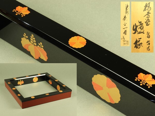 - 【宇】3410 塗師 茶平一斎作 輪島塗 高台寺蒔絵 炉縁 共箱 茶道具
