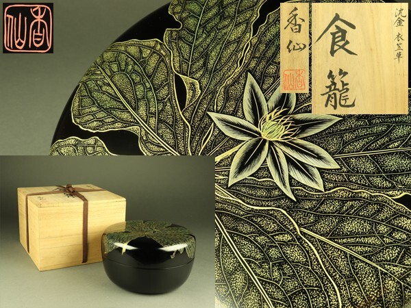- 【宇】3419 香仙作 沈金 衣笠草 喰籠 共箱