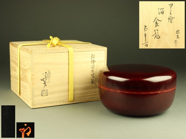 - 【宇】2881 漆匠 川端近左造 網絵溜丸喰籠 久田宗也(尋牛斎)書付 共箱