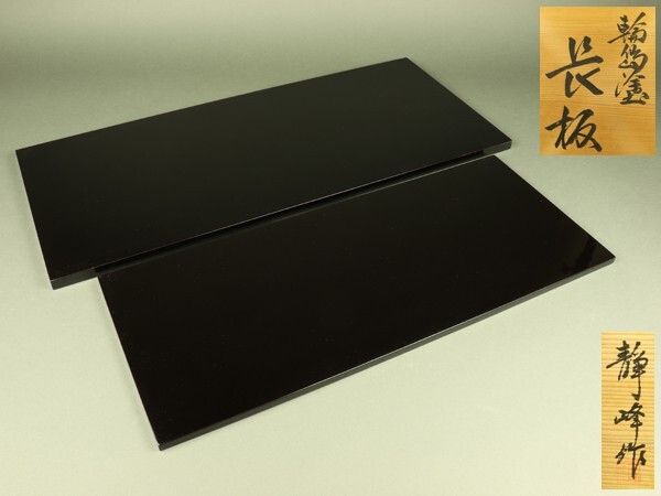 - 【宇】3009 塗師 静峰作 輪島塗 長板 大小一双 共箱 茶道具 状態良好品