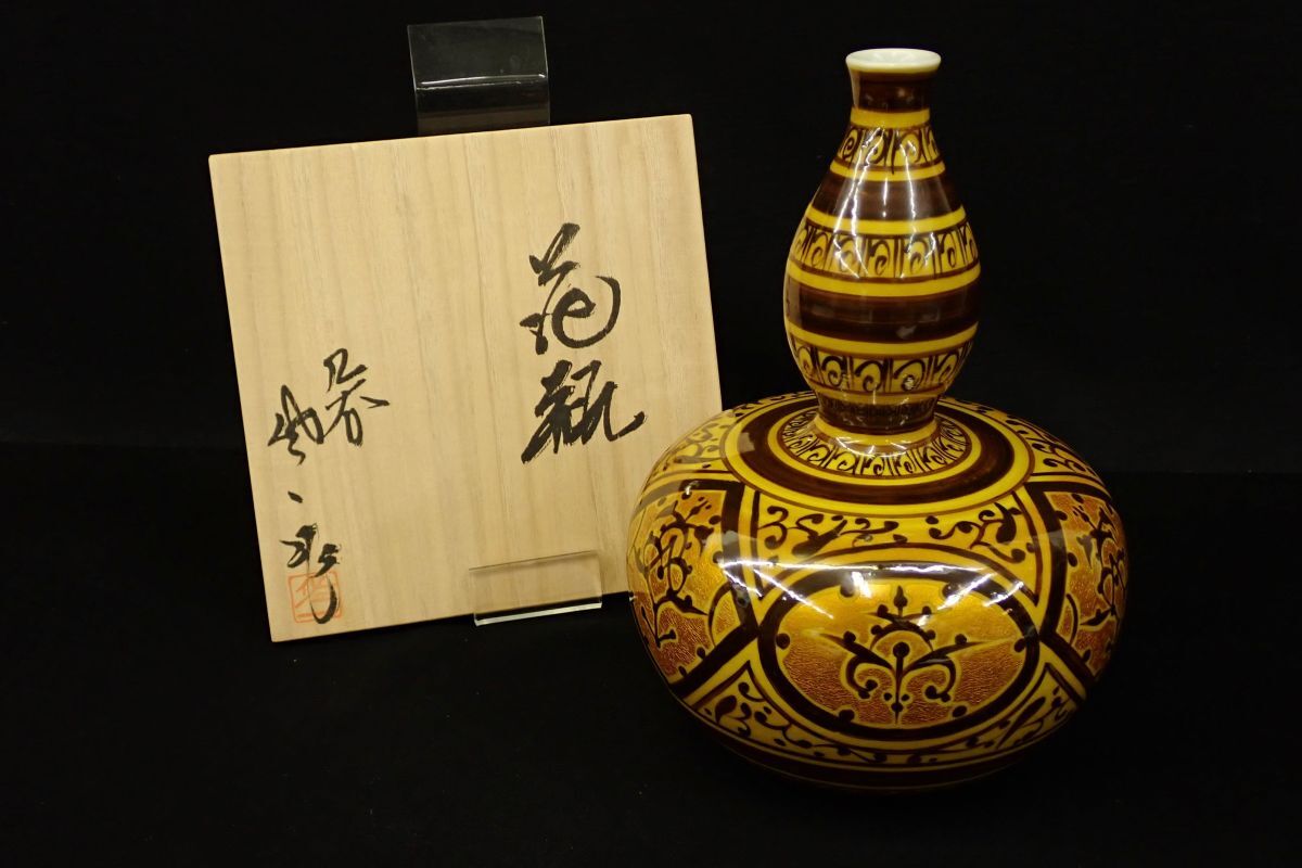 - ◆04 九谷焼 松本佐一 「花瓶」共箱◆高さ28㎝/消費税0円
