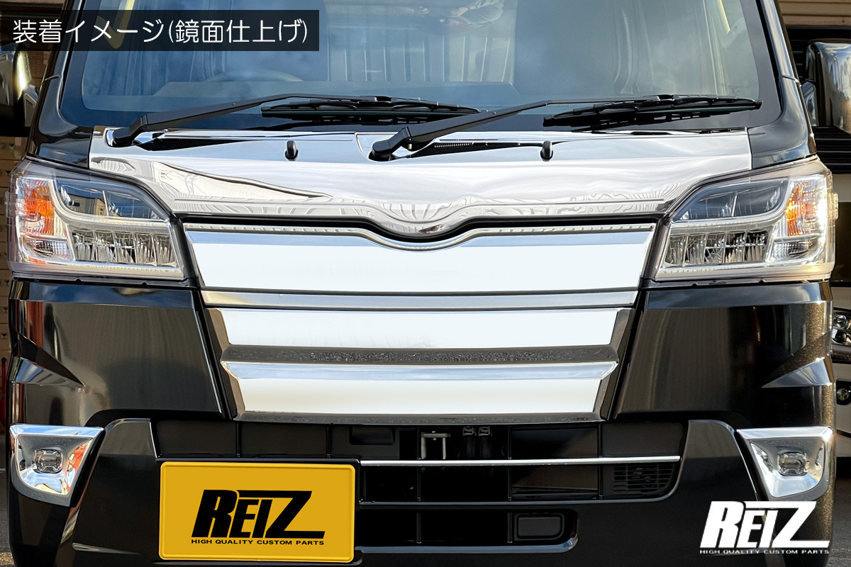 - S500U/S510U ピクシストラック 前期 ボンネットフードトリム [鏡面仕上げ] 両面テープ施工済み メッキ調 マークレス ボンネット カバー