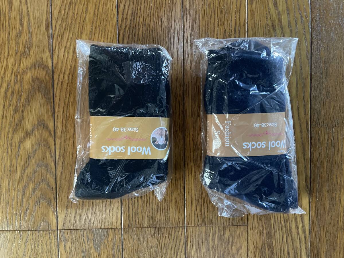 - 新品B4 ウール70%ソックス 2足SET(黒/ネイビー) 裏パイル サイズ24~27cm