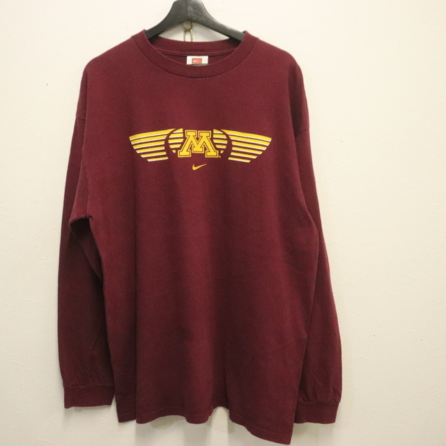> B989 2000年代製 NIKE ナイキ 長袖Tシャツ■00s 表記Lサイズ ボルドー ロンT カレッジ センタースウォッシュ アメカジ 古着 古着卸 激安