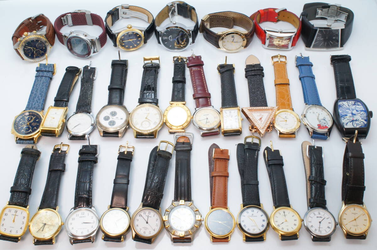 - Z76●美品含む 30点セット メンズ腕時計 革 レザーベルト SEIKO/CITIZEN/FOSSIL/Calvin Klein/Folli Follie 他 大量まとめ クォーツ