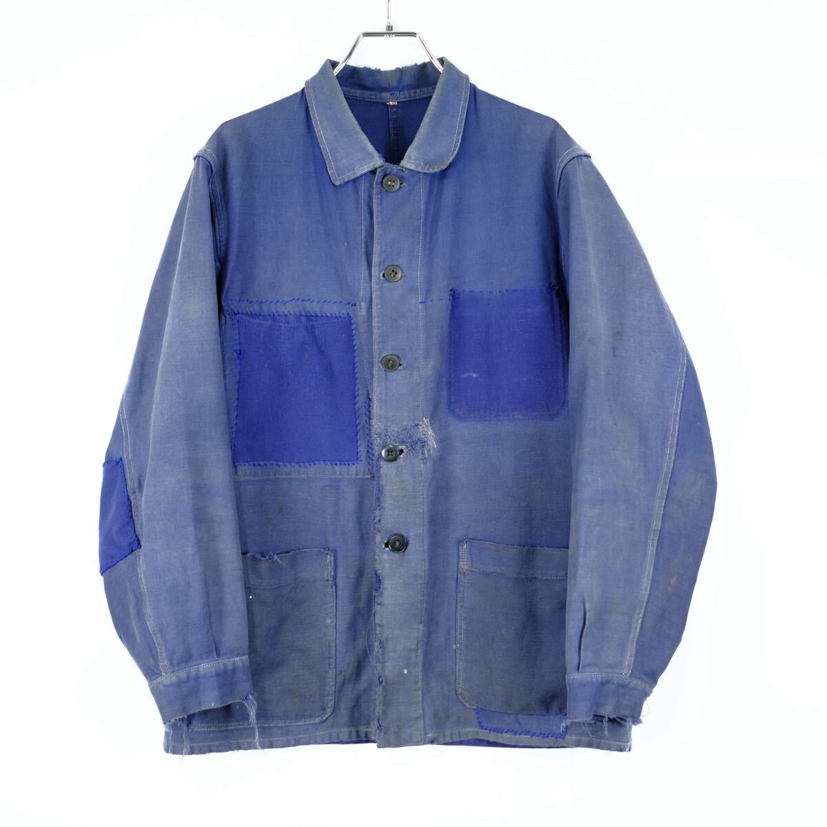 > 1950s フランス ビンテージ インディゴコットンジャケット 襤褸 カバーオール ヴィンテージ フレンチワーク ボロ リペア 古着屋