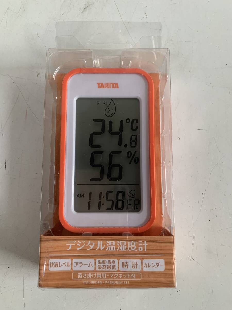 > ⑭y475新品◆TANITA タニタ◆温湿度計 TT-559 時計 カレンダー アラーム 温度 湿度 デジタル 壁掛け 卓上 マグネット オレンジ