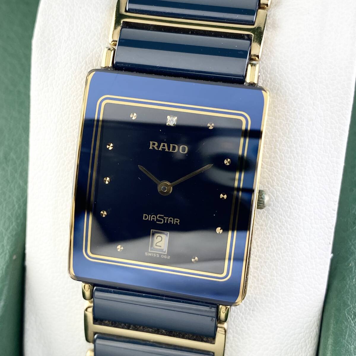 > 【1円〜】RADO ラドー 腕時計 メンズ DIASTAR ダイアスター 160.0281.3 セラミック ブラック文字盤 ゴールド スクエア デイト 可動品