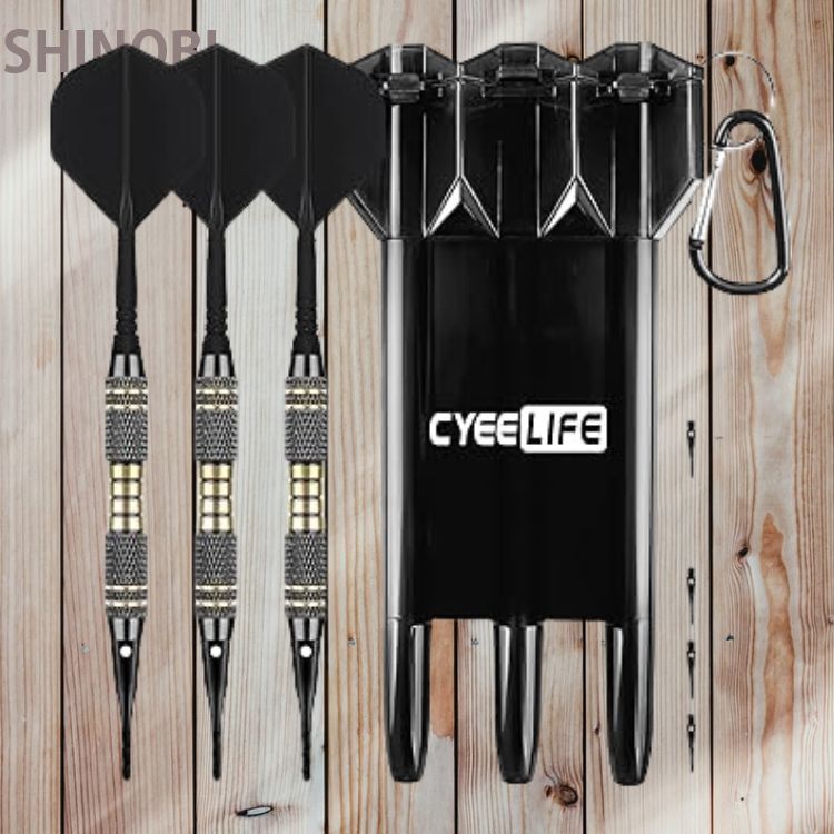 > ダーツプラスティックチップ プロソフトチップダーツセット18 g スーツケースと30個の追加ダーツチップ付き 電子ダーツボード用 (黒)